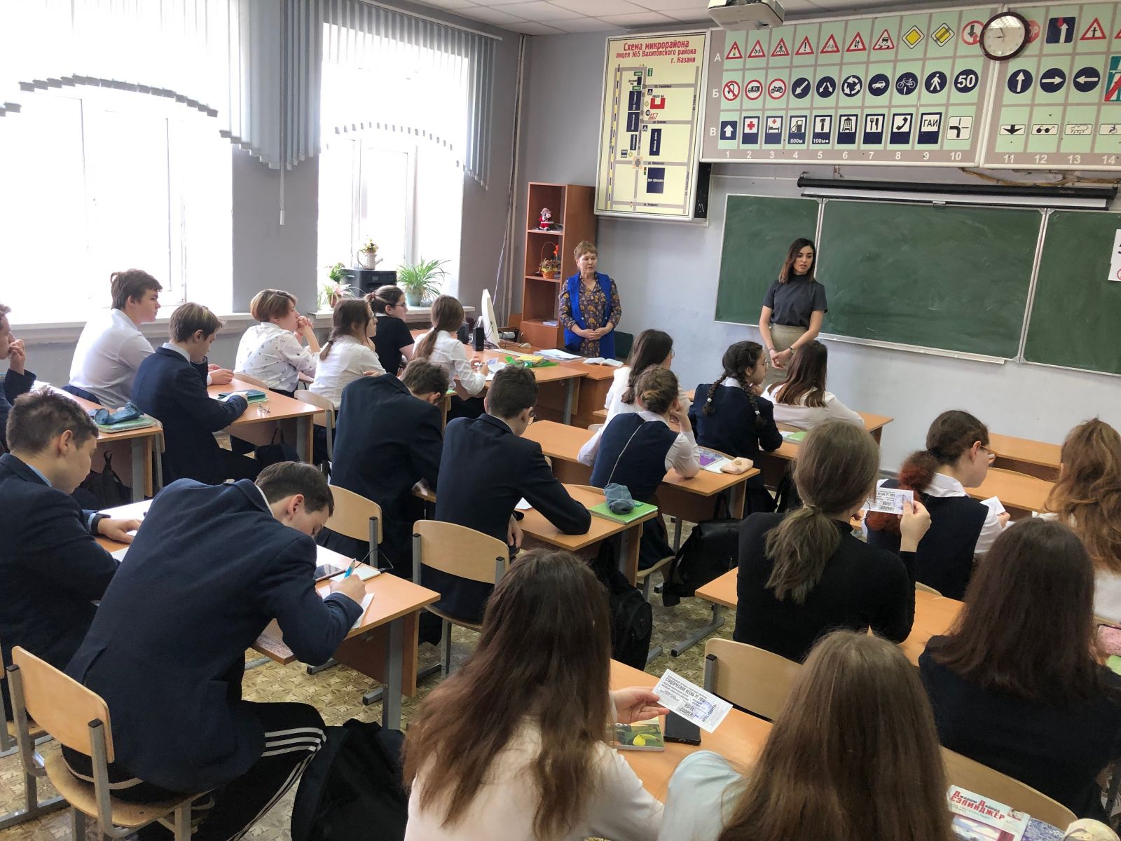 В рамках профориентационной работы 9 апреля 2019г. состоялась встреча обучающихся 9 – 11 классов с представителями Казанского кооперативного института – заместителем декана инженерно-технологического факультета Зиннатуллиной Алисой Габделхабировной и ведущим специалистом Гельмухановой Юзелей Юносовной.
