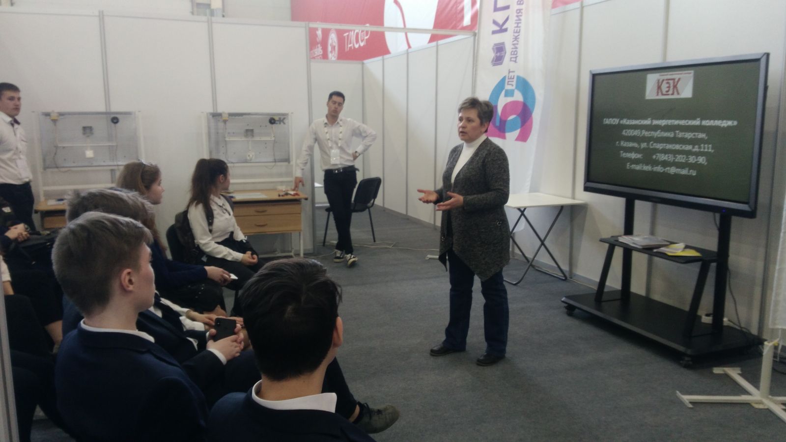 В рамках подготовки к Чемпионату, социального партнерства с Казанским государственным энергетическим университетом, учащиеся 10-11 классов, ориентированные на получение инженерно-технического образования в будущем и изучающие на профильном уровне предметы естественного и математического циклов, приняли участие 12 апреля 2019г. в профориентационном уроке «Энергетика будущего»