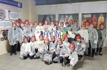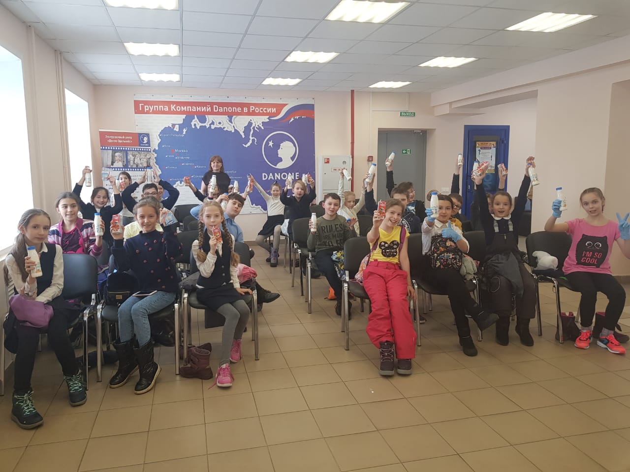 Учащиеся 4а класса побывали на молочной фабрике "Данон", приняли участие вквесте, где им подробно рассказали, в каких молочных продуктах содержится "болгарская палочка".