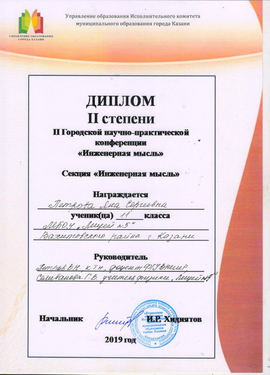 Поздравляем Галину Вячеславовну и ученицу 11а класса Петрову Яну Сергеевну с успешным выступлением на II Городской научно-практической конференции «Инженерная мысль» - Яна стала обладателем Диплома IIстепени на секции «Инженерная мысль»! Молодцы! Успехов и позитивного настроения!