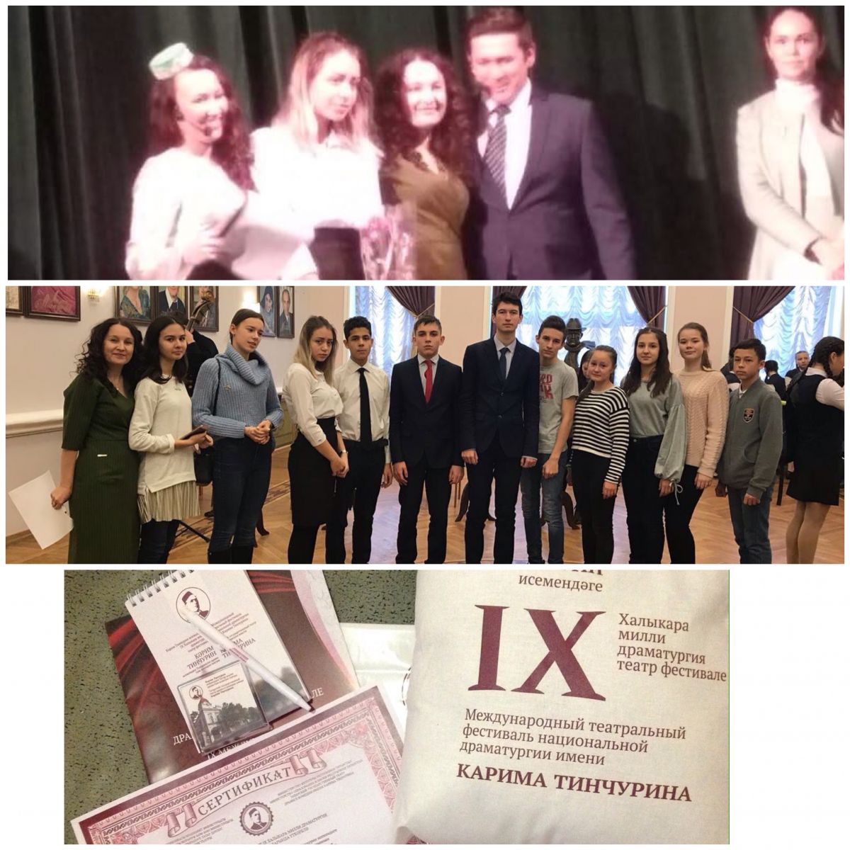 30 ноября в 13:00 в Татарском государственном театре драмы и комедии им. К.Тинчурина состоялось торжественное награждение финалистов IV Республиканского конкурса среди учащихся общеобразовательных школ Республики Татарстан, посвященном 131-летию со дня рождения К.Тинчурина и 85-летию Татарского государственного театра драмы и комедии им. К.Тинчурина.Из нашего лицея финалисткой конкурса в номинации "Картина-эскиз" с рисунком к спектаклю К.Тинчурина "Беренче мәхәббәт" стала ученица 9Б класса Зумагулова Эльза под руководством Тагировой Гульназ Гарифулловны. Ей вручили памятные подарки.