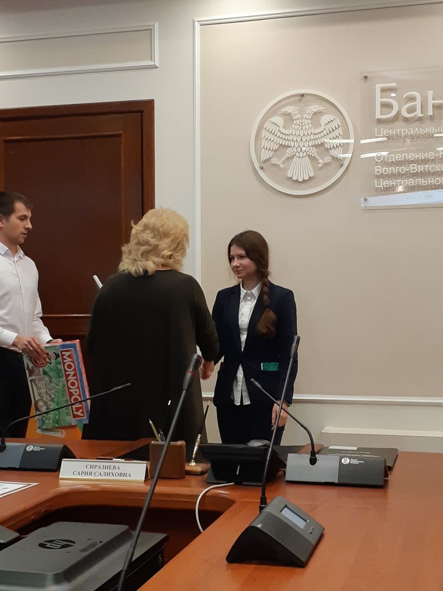 Победители школьного этапа олимпиады по финансовой грамотности Иванова А., Колесникова Е., Сафиуллина З. (11Б) приняли участие в республиканской олимпиаде, проводимой Национальным банком по Республике Татарстан Волго-Вятского главного управления Центрального банка Российской Федерации 27.11.2018г.