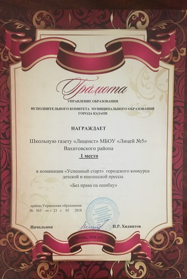 Во многих школах работают свои пресс-центры, выпускаются газеты и журналы. Нашему пресс-центру всего год, а уже есть успехи. В городском конкурсе детской и юношеской прессы «Без права на ошибку» школьная газета «Лицеист» заняла первое место. Поздравляем!