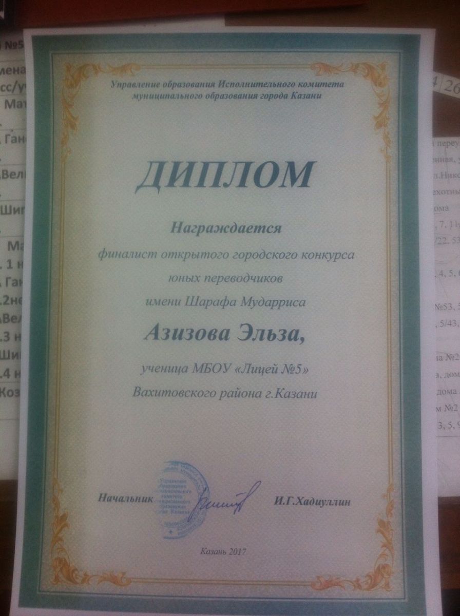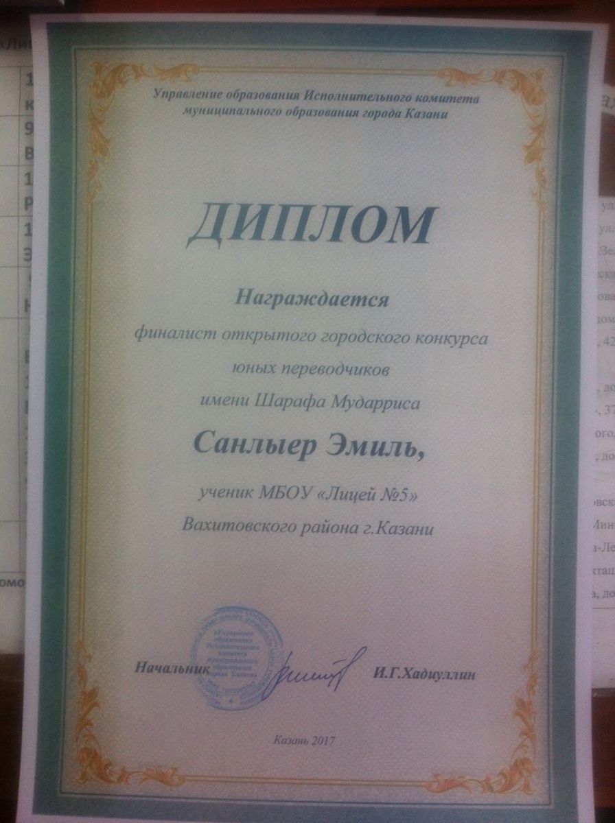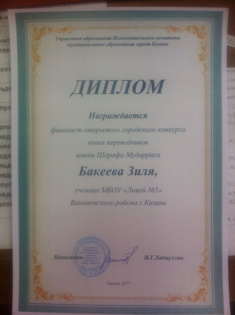 диплом Санлыер Эмиля диплом Бакеевой Зили диплом Азизовой Эльзы