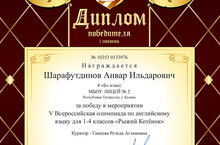 Шарафутдинов Анвар-4 «Б» класс-победитель 1 степени