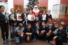 Вот так весело 4 «Б» вместе с Государственным Музеем изобразительных искусств Республики Татарстан отмечает наступление Нового года! Ребята узнали о традициях праздника и новогоднего бала, разговаривали языком платка и веера, собирались на бал, играли в театр-вертеп! И просто веселились: танцевали, рисовали себе загадочное послание на будущий год и, наконец, получали подарки от Деда Мороза!