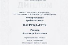 На заключительном этапе Республиканской олимпиады школьников по информатике (робототехнике) Александр стал призером -