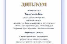 В номинации «Медиа и коммуникации» Дана заняла 1 место! Её проект — яркий пример того, как современные медиа могут служить добрым делам. Отдельная благодарность руководителю - советнику директора по воспитанию и взаимодействию с детскими общественными объединениями Романовой Д.А. за поддержку, наставничество и веру в успех!
