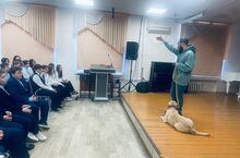 После завершения теоретической части кинолог познакомил обучающихся со своей подопечной – лабрадором по кличке Цента. Кинолог показал, какие команды уже знает собака, и рассказал об особенностях лабрадоров. В конце занятия дети задали интересующие вопросы.