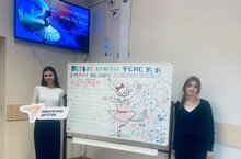 Ученицы 10в класса,Трифонова Ариана и Трифонова Алисия, оформили тематическое пространство в рамках информационной работы. -