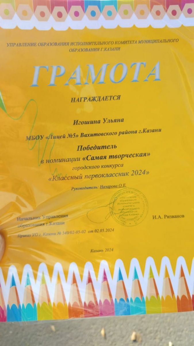 Игошина Ульяна принимала участие в городском конкурсе: Классный первоклассник -2024.