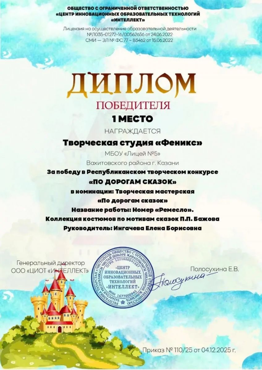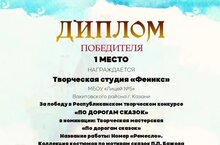 Творческая студия «Феникс» стала победителем в Республиканском творческом конкурсе «ПО ДОРОГАМ СКАЗОК» в номинации: творческая мастерская «По дорогам сказок»