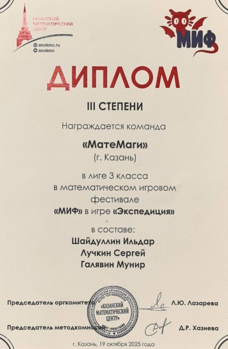 Ученик 3Б класса стал ярким участником масштабного математического фестиваля «МИФ», где его команда блестяще проявила себя.