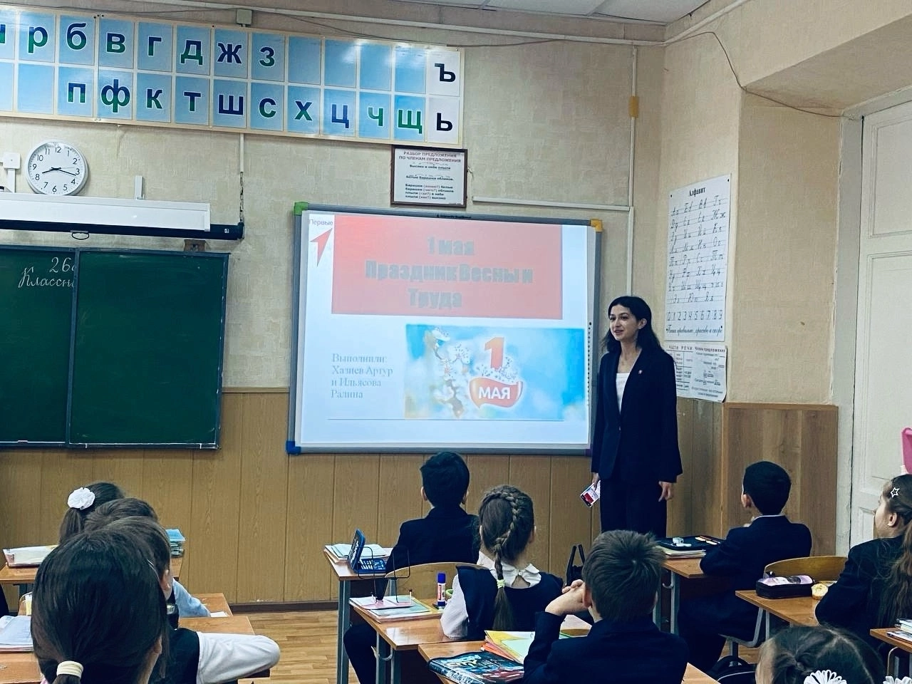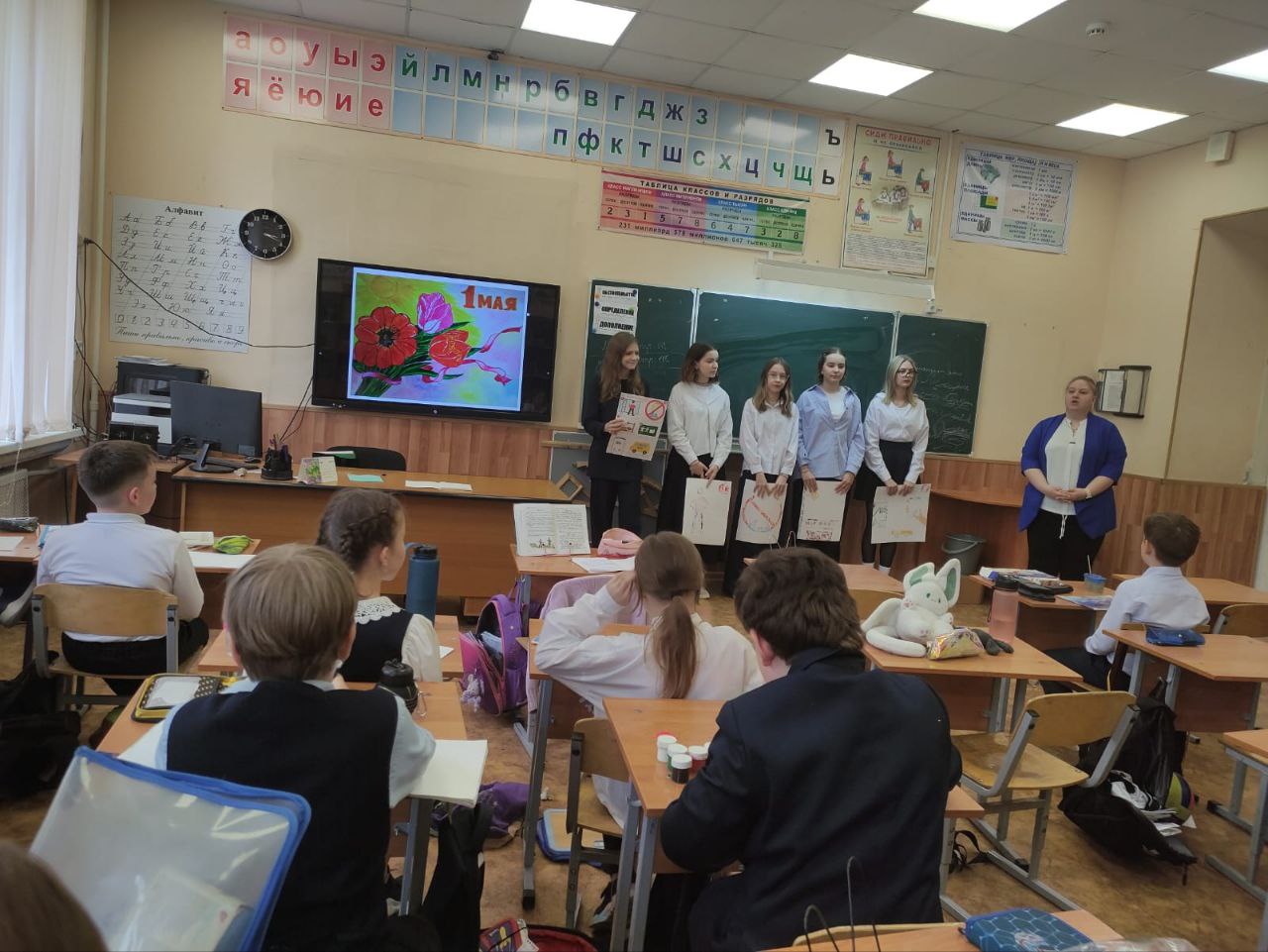 В преддверии 1 Мая в нашем лицее были проведены мероприятия, в рамках которых облагораживали школьную территорию, проводили информационные беседы о празднике(Совет Первых - лидеры направления Хазиев Артур и Ильясова Ралина), создавали открытки (ребята-наставники 5В класса совместно с 1Б), подготовили выставку рисунков (обучающиеся начальной школы).