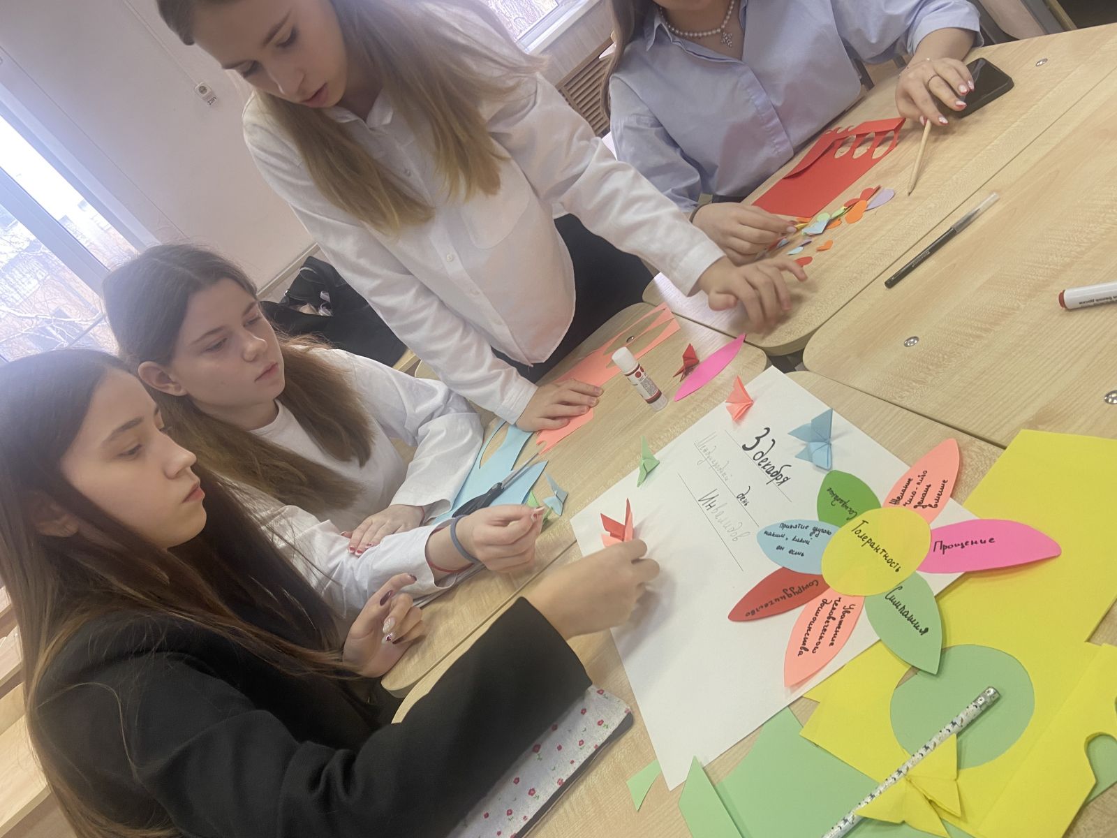 В целях формирования толерантного отношения к детям и взрослым, имеющих ограниченные возможности, воспитания у обучающихся уважительного, гуманного, внимательного отношения к инвалидам, советник директора по воспитанию Марценюк О.С. совместно с активистами Совета Первых организовали и провели игровое занятие «Лаборатория добрых сердец», обучающиеся 9Б и 9В классов создали плакаты «Мир один для всех».