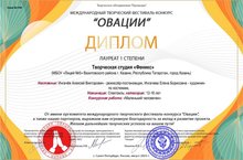 Поздравляем Творческую студию "Феникс" В конце августа а Санкт-Петербурге прошёл Международный творческий фестиваль конкурс "Овации", на котором Творческая студия стала победителем в двух номинациях. В номинации " Театральное искусство" был представлен спектакль "Маленький человечек", в номинации " Театры мод и дизайн костюмов" - номер "Всёчество", коллекция костюмов по мотивам творчества художников-авангардистов.