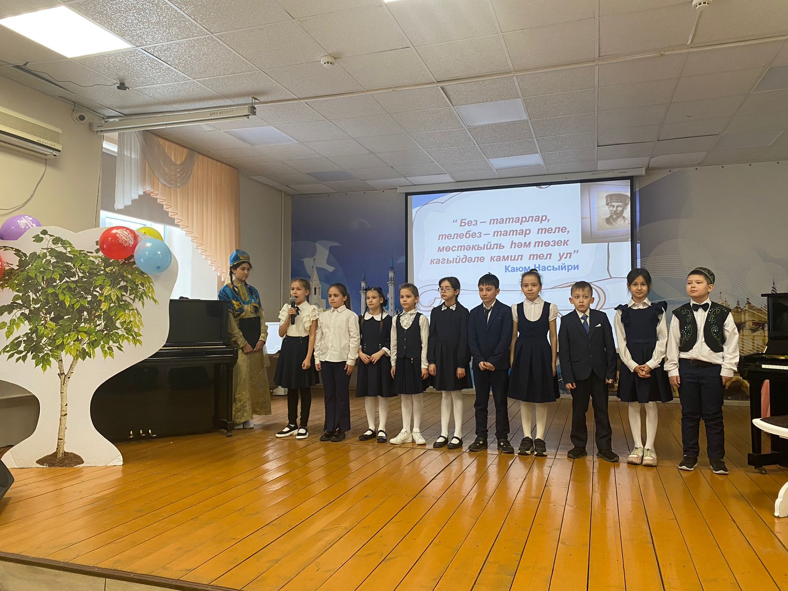 В рамках месячника родных языков ученики 10а и 11а классов посетили Детский центр «Экият». Посмотрели концерт этно - группы «Риваять». В программе были замечательные истории про музыкальные инструменты, разножанровые номера, игры со зрителями и подарки. Концерт всем понравился!