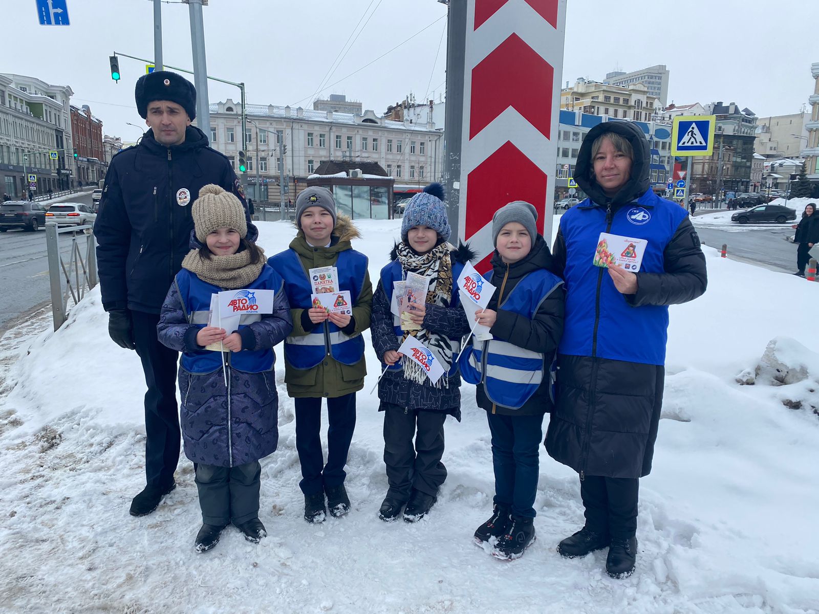 Отряд ЮИД из 3А совместно с «Авторадио» сегодня поздравили прекрасных дам с наступающим праздником, 8 марта!