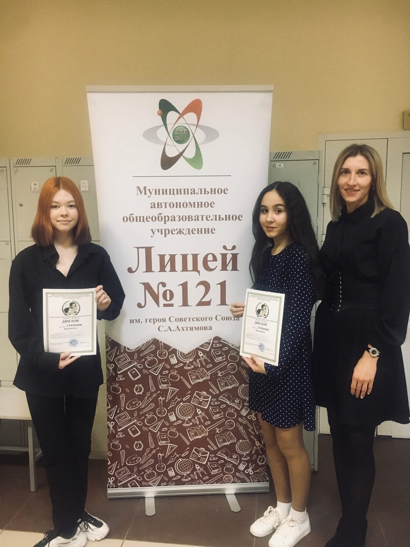 Учащиеся нашего лицея - Трифонова Ариана (8В), Трифонова Алисия (8В), Маркова Анастасия (10Б), Зайниева Малика (11 Б) стали призёрами.