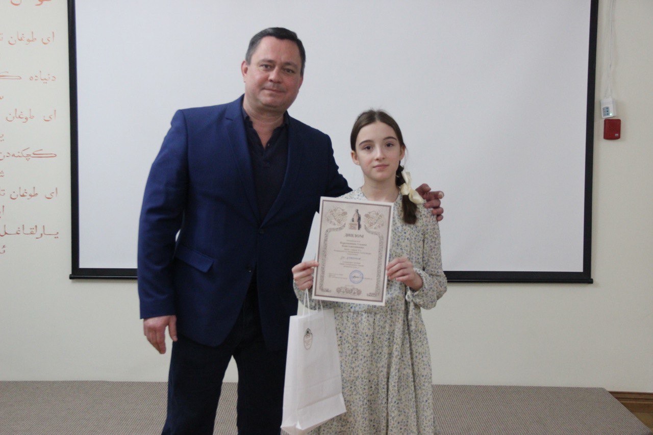 Наш лицей достойно представили ученицы 8-10 классов: Власова Амалия (9Б) – 1 место в номинации «Вернисаж картин» (руководитель Давлетшина Г.А.), Абдуллина Лейла (10А) – 1 место в номинации «Вернисаж картин» (руководитель Марценюк О.С.), Зайниева Ралина (8В) – 3 место и Спиридонова Ксения (10А) – 1 место в номинации «Чтецы. Поэзия на русском языке» (руководитель Марценюк О.С.)