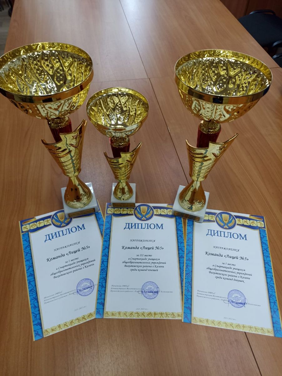 5 лицей занял 1 место в спартакиаде среди учащихся в 2021- 2022 году в Вахитовском районе! Спасибо всем спортсменам лицейского клуба " Старт на 5" , принявшим участие во всех соревнованиях спартакиады!