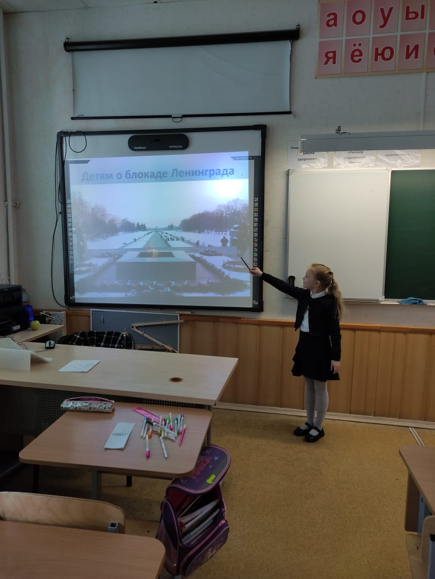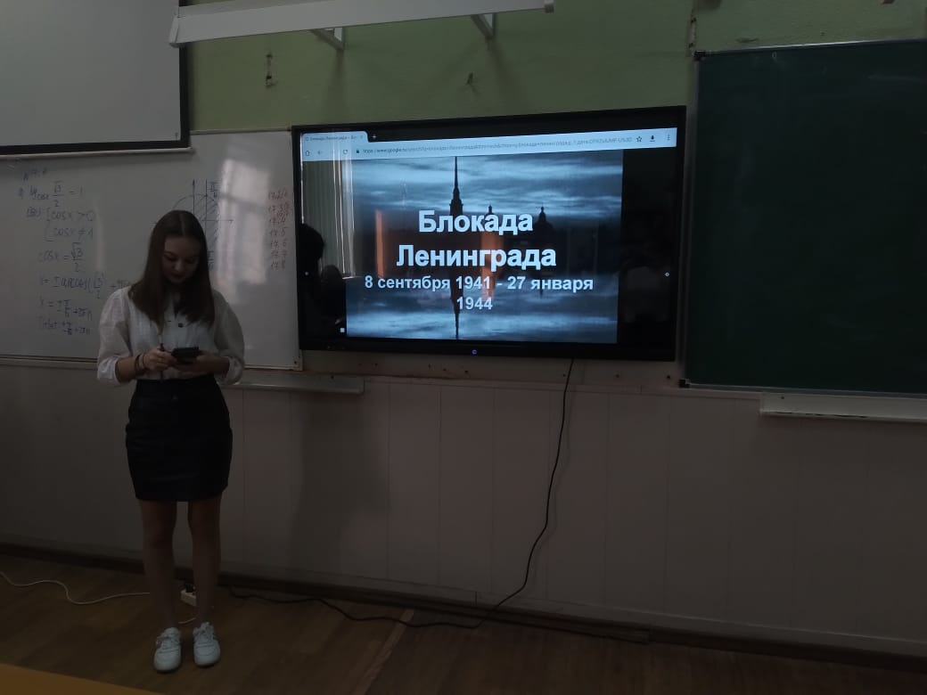 27 января учащиеся 9в класса стали участниками Всероссийского открытого урока «Город вечно живых», посвящённый дню окончательного снятия блокады Ленинграда советскими войсками, которая длилась 872 дня. Проект инициирован Минпросвещения России.