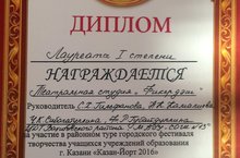 «Фикердәш» театр студиясе I дәрәҗәдәге лауреат дипломына лаек булды 08.04.2016
