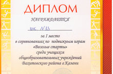 Учащиеся школы заняли 1 место в соревнованиях по подвижным играм "Веселые старты".