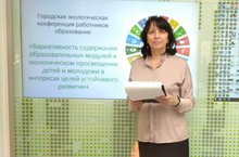 Учитель математики Гильмиева Г.Г. выступила на базе Эко-центра «ДОМ» с опытом работы по экологическому воспитанию учащихся на городской экологической конференции педагогических работников образования детей по теме:
