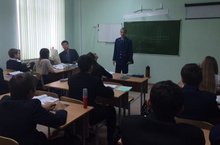 Бүген 8нче сыйныфларда Вахитов районының прокурор ярдәмчесе, өлкән лейтенант Галеев Рамиль Фәрит улы "Наркотик матдәләрнең законга каршы әйләнешендәге җинаятьчелеген булдырмау" темасы буенча чыгыш ясады.