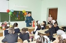В первый день нового учебного года, в рамках двух масштабных мероприятий МЧС России – 25-летия чрезвычайного ведомства и Месячника безопасности детей, сотрудники Главного управления МЧС России по Республике Татарстан принимают участие в проведении «Дня знаний» с учащимися образовательных учреждений и проводят занятия по соблюдению мер безопасности жизнедеятельности. Особое внимание в беседах с детьми будет уделяться вопросам пожарной безопасности и использованию единого номера вызова экстренных служб «112». В 5 классе первый урок по безопасности провел инспектор МЧС Сафин Р. Р.