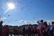 Сегодня в Казани последний звонок прозвучал для 5555 выпускников школ города. В ходе торжественного мероприятия, прошедшего на площади перед стадионом «Казань-Арена», выпускников поздравил врио Президента РТ Рустам Минниханов, Мэр Казани Ильсур Метшин, представители Исполнительного комитета и районных администраций, депутаты, руководители предприятий и преподаватели вузов.
