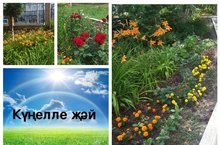 Җәй уртасы-чәчәк ату вакыты. Мәктәп яны участогында күп кенә матур чәчәкләр күрергә мөмкин, алар укытучылар һәм укучыларның кайгыртучан куллары белән үстерелгән.