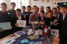 В рамках юбилейных торжеств, приуроченных к 60-летию полета человека в космос, педагогами предметов эстетического цикла была организована выставка творческих проектов обучающихся «Космическая мозаика». Ребята представили оригинальные коллажи, аппликации, объемные композиции. На творчество их вдохновили пьеса американского композитора «Вопрос, оставшийся без ответа».