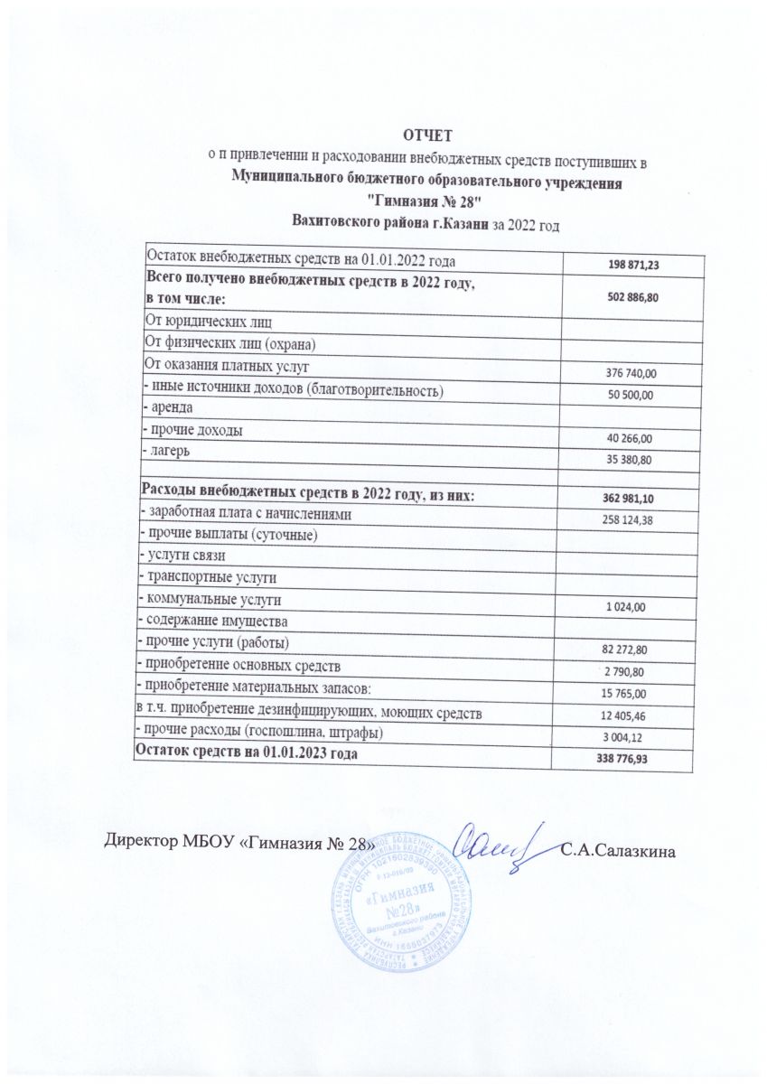 Отчет о привлечении и расходовании внебюджетных средств за 2022 год