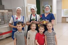 Сегодня наши дошколята поздравили тётю Повара с профессиональным праздником, поблагодарили их за вкусные обеды и подарили цветы и тортик. Повар – специалист, который умеет из простых продуктов сделать для малышей вкусные завтраки, обеды и ужины. А как известно, правильное, сбалансированное и качественное питание – важный компонент здорового образа жизни мальчишек и девчонок. Благодаря таким мероприятиям и встречам дошкольники знакомятся с сотрудниками детского сада, получают знания о конкретных профессиях и учатся ценить труд других людей.