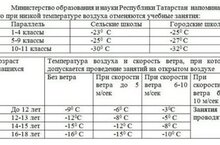 Таблица температурного режима для проведения уроков физической культуры на свежем воздухе, прогулок и отмене занятий в школе...