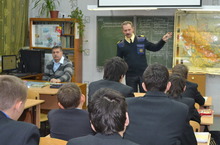 26 ноября 2013г представителем МЧС Ягофаровым А. А. была проведена профилактическая работа с учащимися 1б, 7в, 8б классов. Инспектор прочитал лекцию на тему: «Правила поведения на льду».