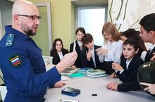 В 8А классе классный час провёл Халиков И. А., профессор кафедры ОРД Казанского юридического института (филиала) университета прокуратуры РТ. Тема лекции "Поисковое движение России". -