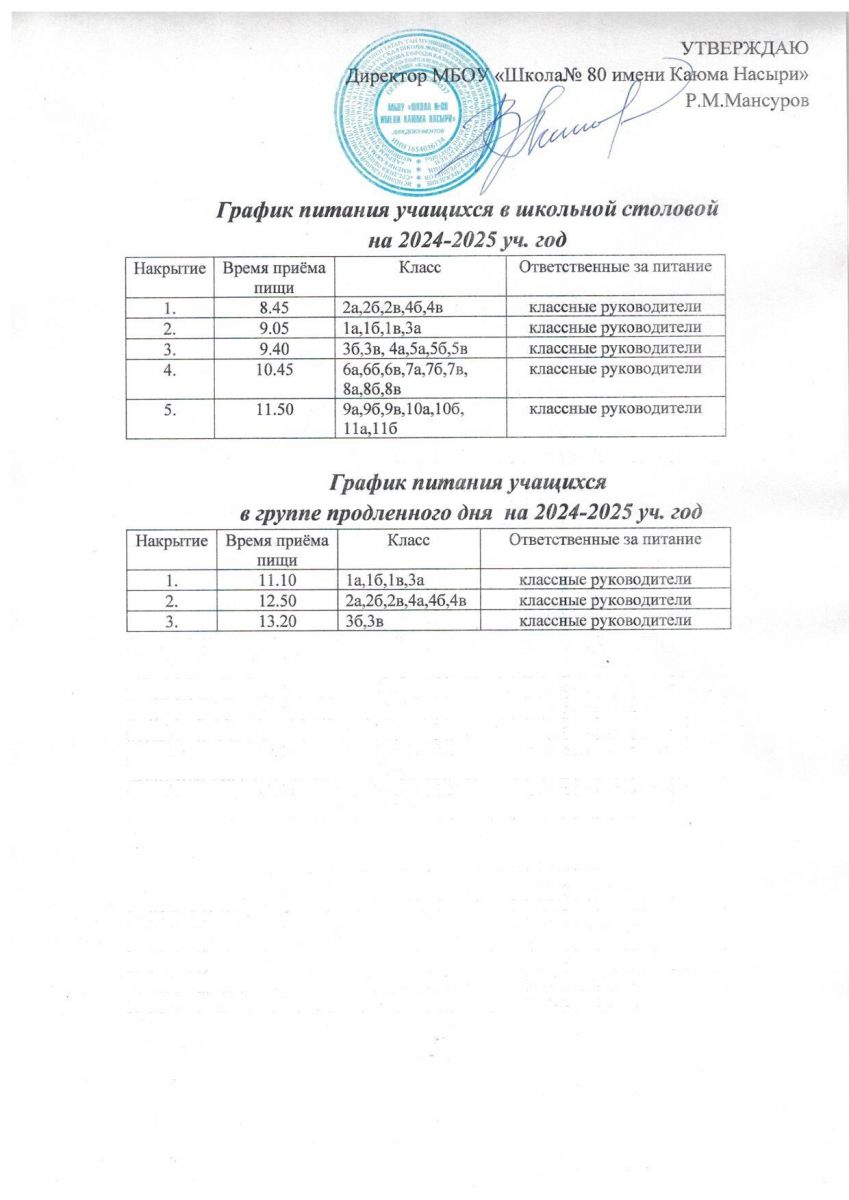 График питания в столовой.