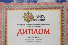 Учащиеся 5в класса Абдреев Т., Гайнанов А., Лазаревич Г., Лазаревич М., Шакирзянов К. В составе команды «Казань-5- Центр» получили диплом 3 степени в 12 турнире математических флеш-боев «Лига открытий». Молодцы ребята!!! Поздравляем!!!
