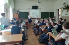 7 мая, в преддверии Великого праздника, Дня Победы,праздника со слезами на глазах, в 7 в классе состоялся урок Памяти, посвящённый 74 - летию со Дня Великой Победы над фашистской Германией-учитель Семёнова Вероника Васильевна. С интересной презентацией перед классом выступила Назипова Лия, которая рассказала ребятам о малоизвестных фактах Великой Отечественной войны.Большой блок выступления был посвящён Детям войны, которых фашисты тысячами вывозили из Советского Союза и Польши в возрасте от 2 месяцев до 6 лет в лагерь «КиндерКЦ».Фашисты давали им новые имена и заставляли говорить на немецком языке. Сегодня многие из них, став уже взрослыми, даже не знают, что они не немцы и никогда об этом не узнают... В заключении Лия провела игру-викторину «Победа» и победители - Хакимуллина Диана и Соколова Даша были награждёны призами. Украсил урок своим выступлением Назмиев Ильдар,который исполнил под гитару песню военных лет. В ходе урока учитель истории Вероника Васильевна рассказала ребятам об ужасах войны, ее последствиях и призвала принять участие в акции «Бессмертный полк».