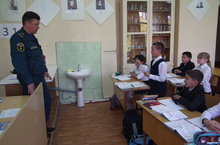 После завершения учебной эвакуации с учениками 1б и 5А классов был проведён урок безопасности на тему: «С огнём не шутят».