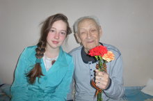 Накануне Дня Победы, в день, когда была подписан Акт о безоговорочной капитуляции Германии наши ученики Сидоркина Анастасия (8а) и Белов Павел (10а) посетили ветерана, находящегося в этот день 70 лет назад в Берлине- Попова Юрия Семеновича. Ребят сопровождали сразу два руководителя музея партизанской славы - ветеран педагогического труда Федорова Валентина Алексеевна и Бастракова Ирина Владимировна.