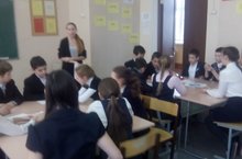 В рамках декады гуманитарных предметов 23.01.15 учитель русского языка и литературы Адылова Д.А. и учитель английского языка Чеботарев Р. А. провели открытый интегрированный урок « Литературная гостиная» по творчеству Шекспира с использованием интерактивных методов обучения . Ученики 9-х классов получили интересную информацию по творчеству писателя благодаря познавательным видеороликам , использованных на уроке . Звучали сонеты Шекспира в исполнении учеников и учителей под музыкальное сопровождение. Все участники мероприятия получили огромное удовольствие от этого урока.