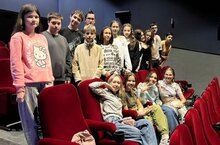 7 Б класс в последний день четверти посетили кинотеатр, где посмотрели художественный фильм Василиса и Хранители времени.