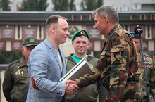 На торжественном мероприятии, посвященном 94-ой годовщине образования ВДВ собралось более 300 десантников, ветеранов боевых действий и их близких.Главный тренер школьной секции каратэ, Руководитель Исполкома Российского Союза боевых искусств по РТ Александр Даренков поздравил десантников с Днем ВДВ от имени спортивной общественности России