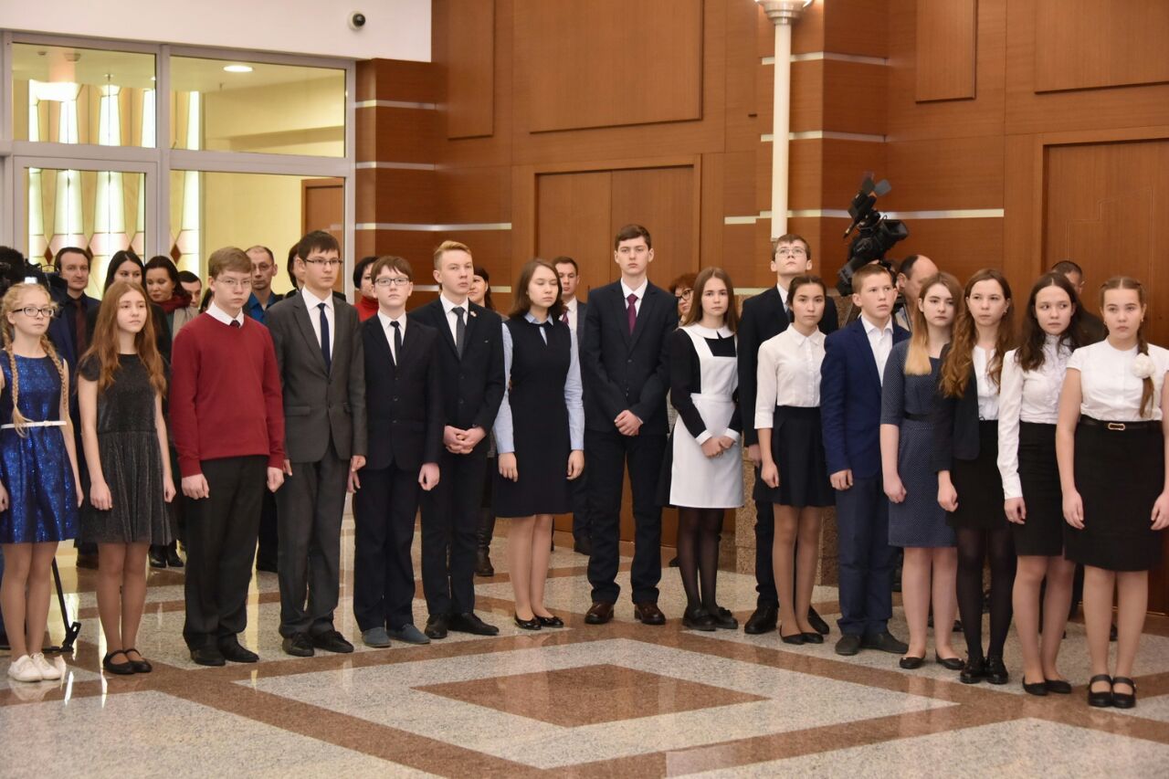 Сегодня в Госсовете Татарстана торжественно вручили паспорта молодым гражданам России. Среди них отличники учебы, победители различных конкурсов и спортивных соревнований, призеры олимпиад, активные участники общественной жизни своей школы. 34 школьника со всей республики, достигшие 14-летия, получили главный документ из рук Председателя республиканского парламента Фарида Мухаметшина. Почетное право принять паспорт из рук председателя Госсовета получил и наш обучающийся 8А класса Абзалов Амаль. Поздравить со знаменательным событием юных жителей республики пришли не только их родственники, но и депутаты, сотрудники аппарата Государственного Совета РТ, представители министерств и др.