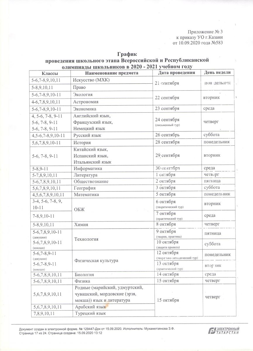График проведения школьного этапа Всероссийской и Республиканской олимпиад школьников (стр1)