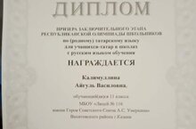 Поздравляем Калимуллиу Айгуль, ученицу 11в класса, ставшую призером Республиканской Олимпиады по родному татарскому языку!!!